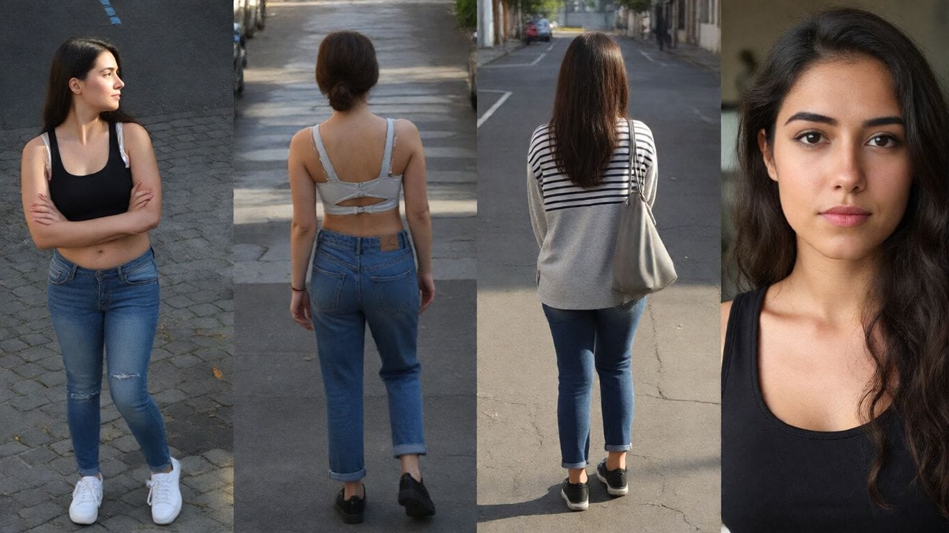 ✅ Prompt: Recreate the person from [Image1] in four different camera perspectives.Keep the subject’s identity, body proportions, and clothing consistent across all four images. Maintain the same background environment as [Image1], with photorealistic lighting, natural shadows, and high-quality details. Generate four variations side by side: Bird’s-eye view (from above). Rear view (from behind). Side profile view. Close-up portrait view.