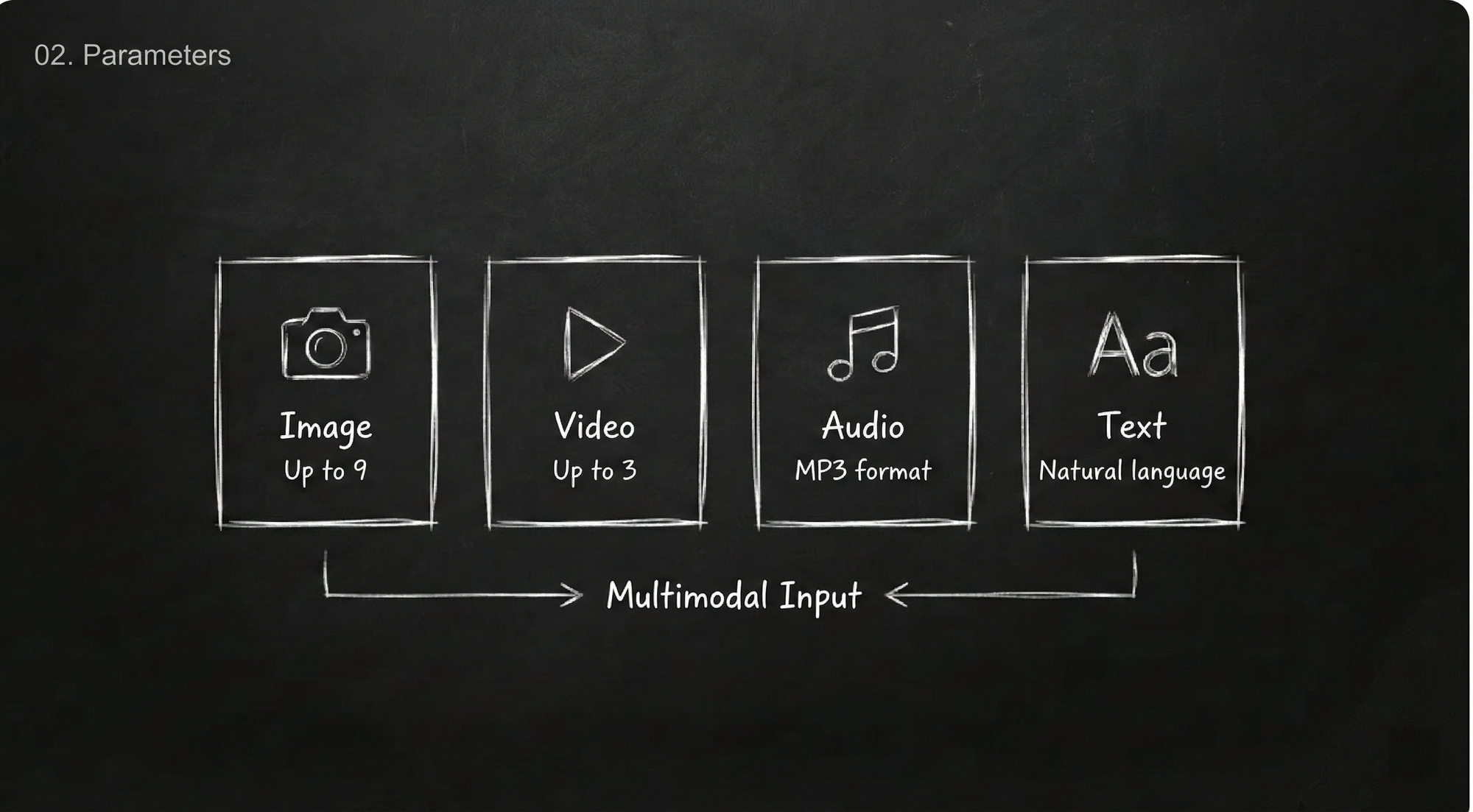 - Full Reference Entry: Use this for multimodal combinations (images + videos + audio + text).