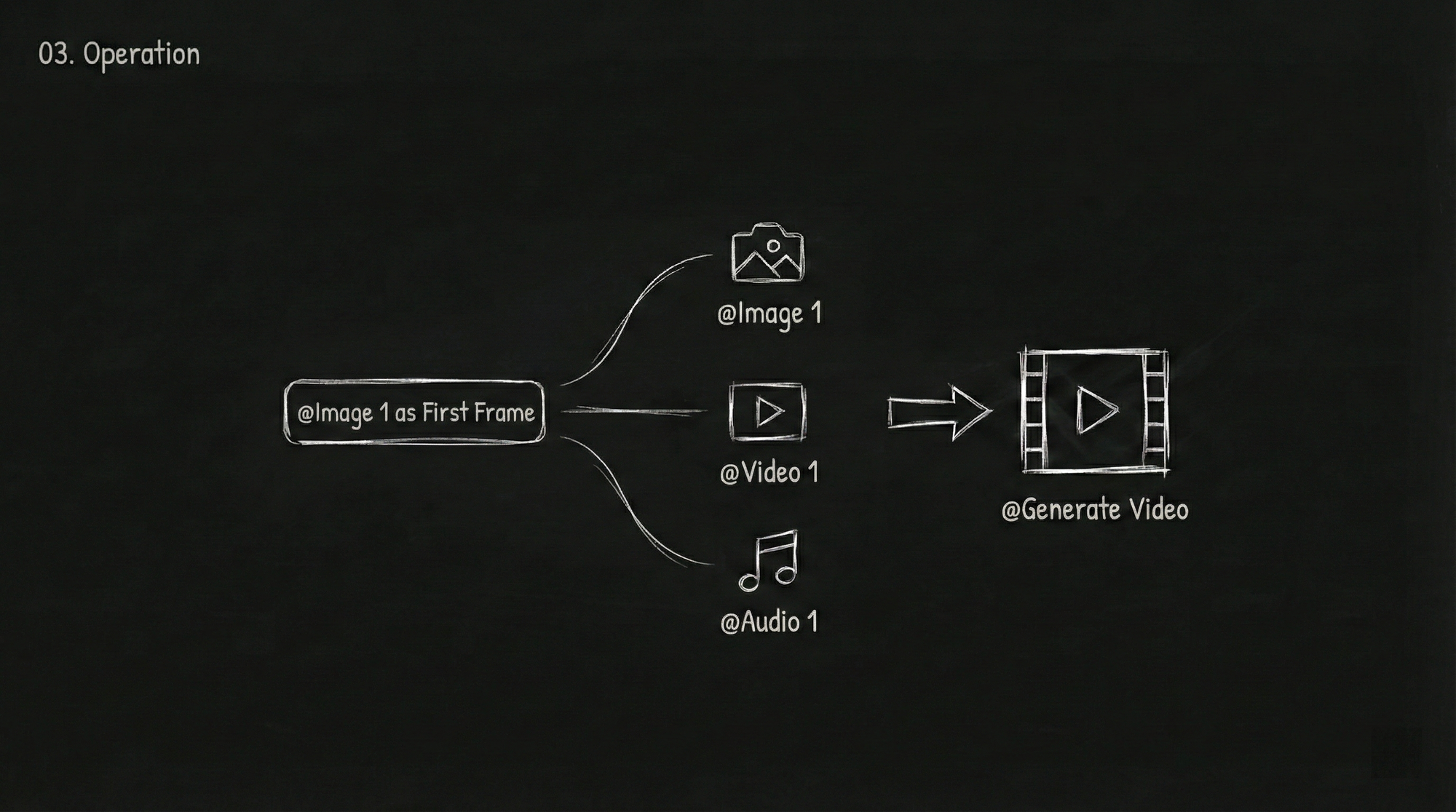 | "Use this image" | "@Image1 as first frame, character image reference @Image2" |