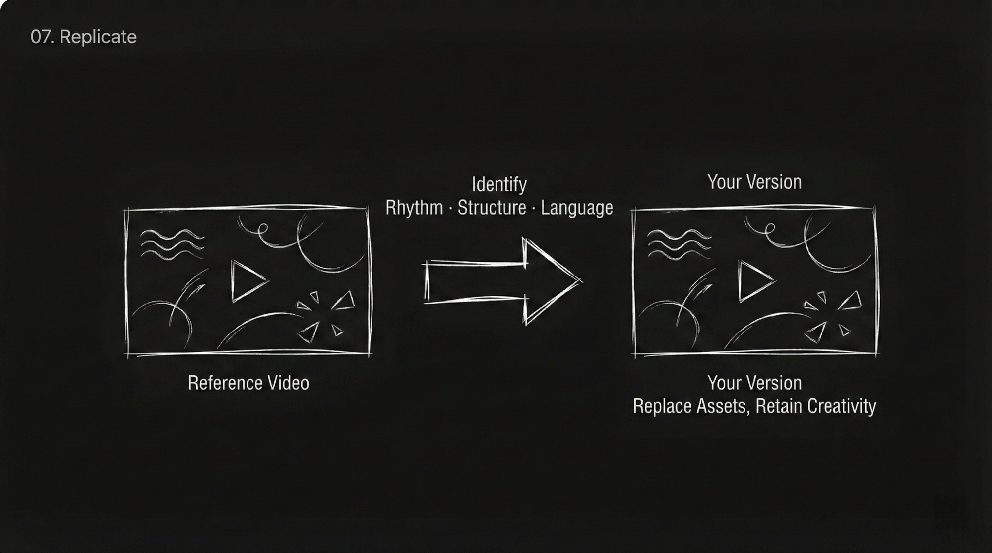 | "Reference this video" | "Reference @Video1's camera movement and transition effects" |