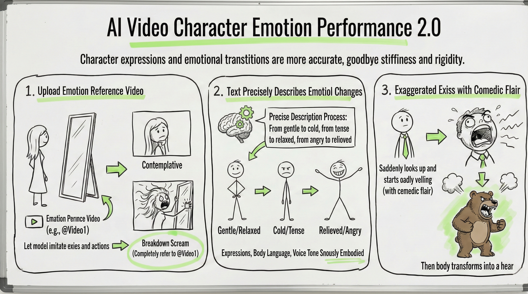 You can also accurately describe the emotional transition process with text: from gentle to cold, from nervous to relaxed, from angry to serene. The model can understand these emotional transitions and synchronize them in the character's expressions, body language, and vocal tones.